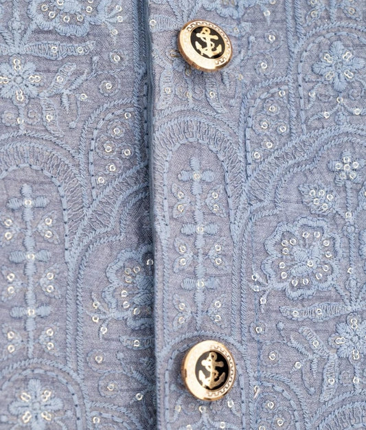 Blue Silk Sherwani with Pant & Red Stole fo...