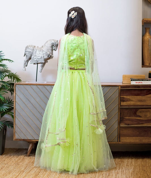Green Butterfly Lehenga for Girls