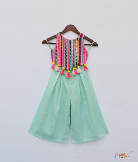 Multi Colour Knitted Top with Aqua Plazo Pant f...