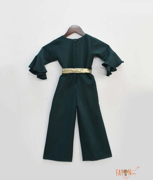 Emerald Green Bubble Georgette Jumpsuit for Girls