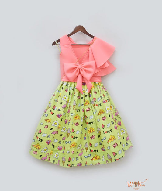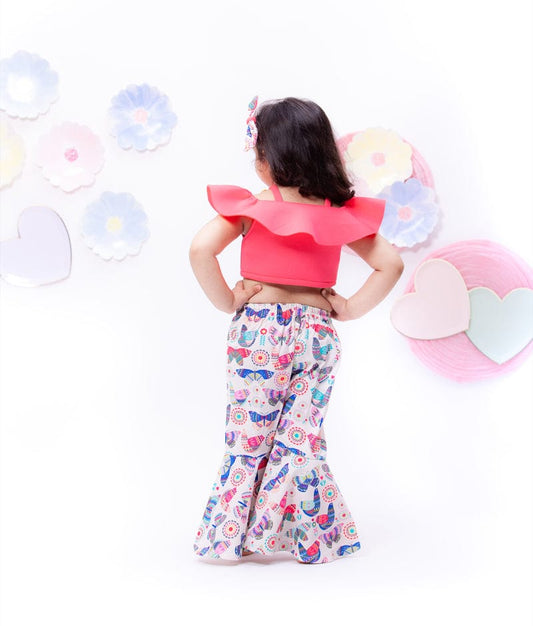 Yellow Lycra Crop Top with Printed Pant for Girls