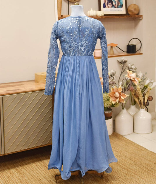 Blue Sequence Embroidery Gown – Rich hues, dazzling embroidery—pure magic.