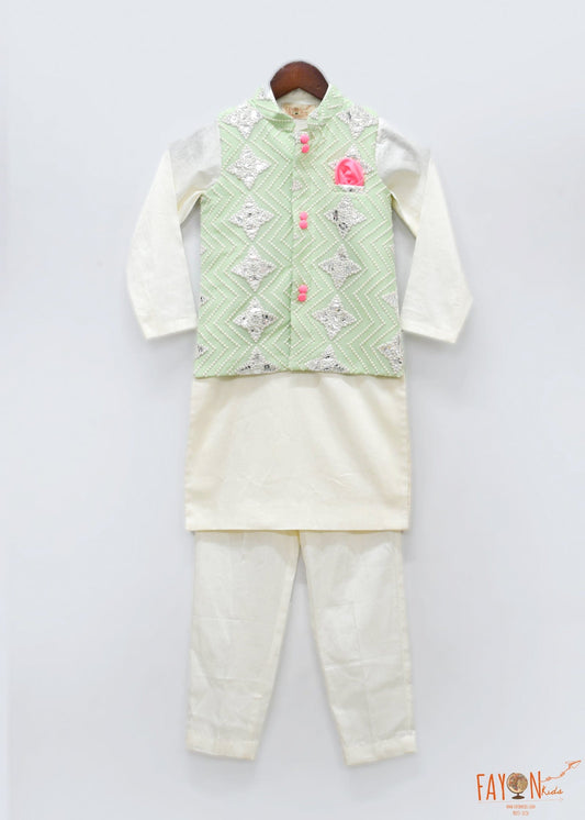 Sequins Embroidery Nehru Jacket Green Kurta Pan...