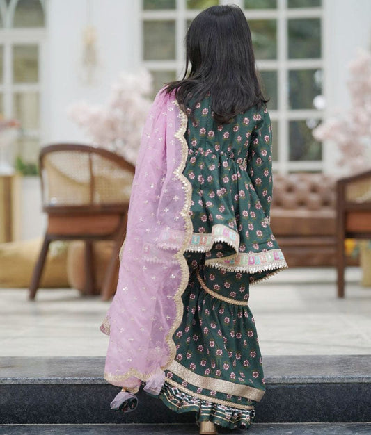 Green Printed Kurti Sharara for Girls
