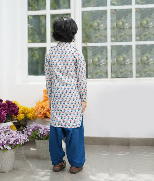 Orange Flower Buti Print Kurta and Salwar for Boys