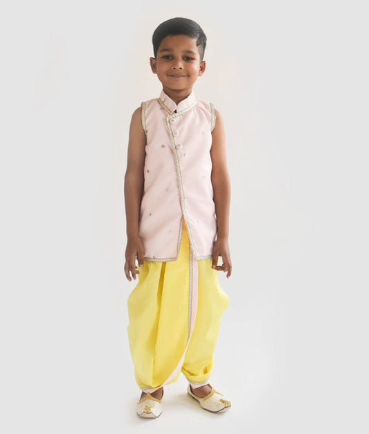 Pink Jacket with Yellow Dhoti for Boys