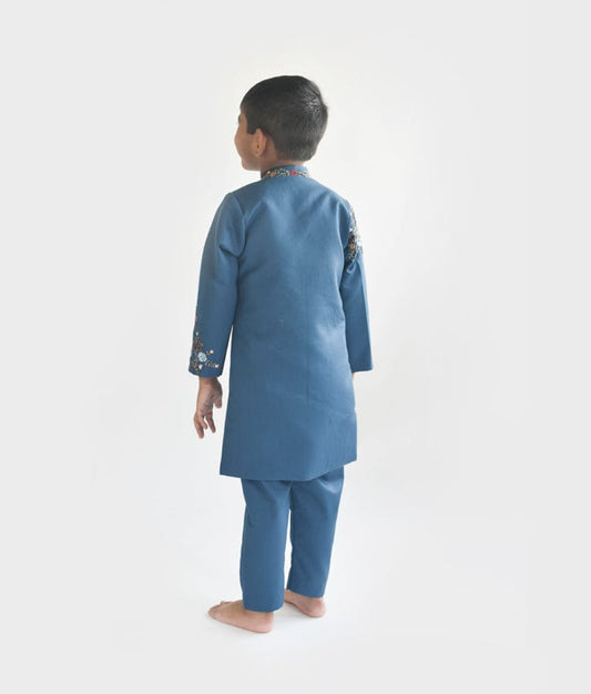 Blue Embroidery Sherwani and Pant for Boys