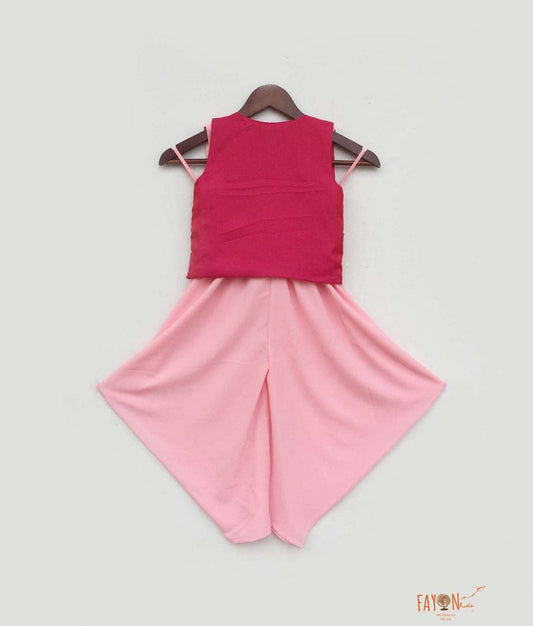 Pink Silk Kurti with Embroidery Sharara Organza...