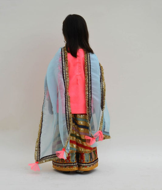 Pink Shimmer Net Lehenga set for Girls