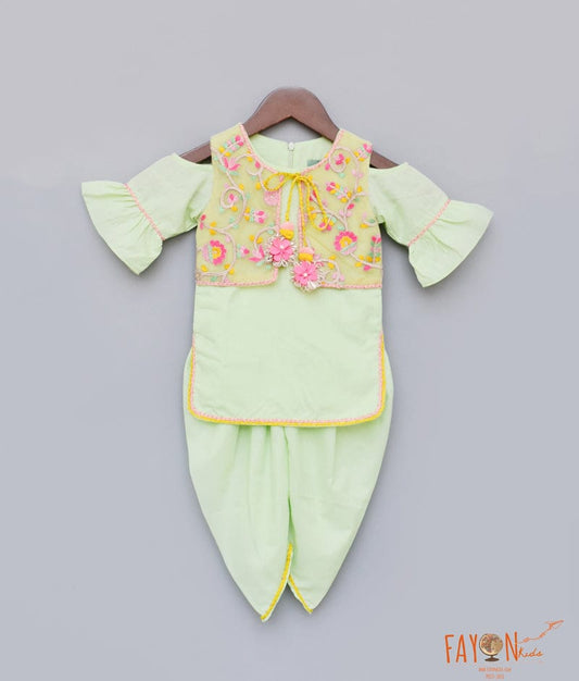 Pista Green Cotton Dhoti Set with Embroidery Ja...