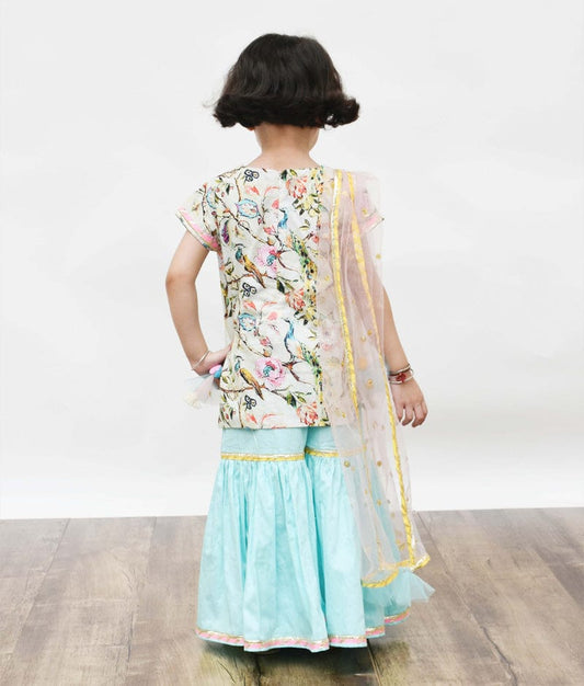 Pista Green Blue Printed Sharara with Kurti Bot...
