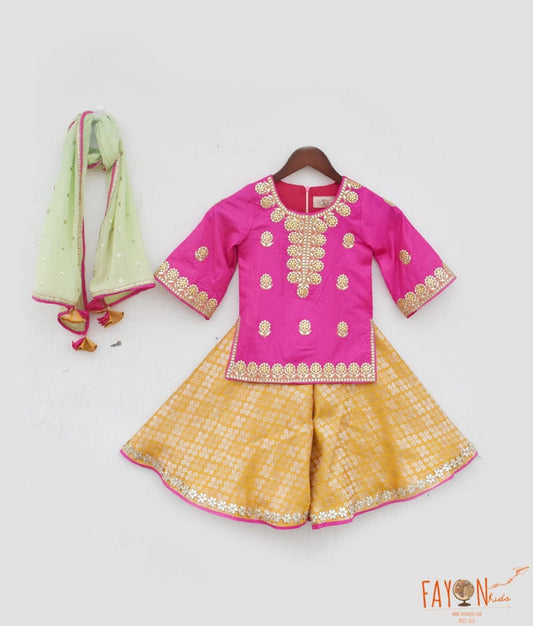 Blissful Blooms: Pink Kurti with Yellow Brocade...