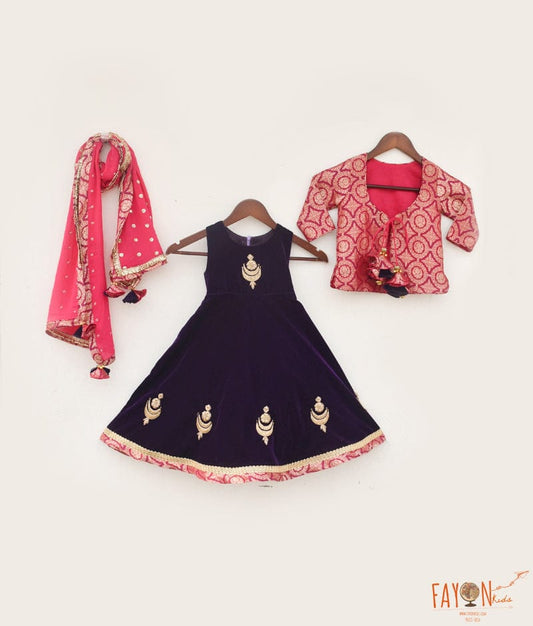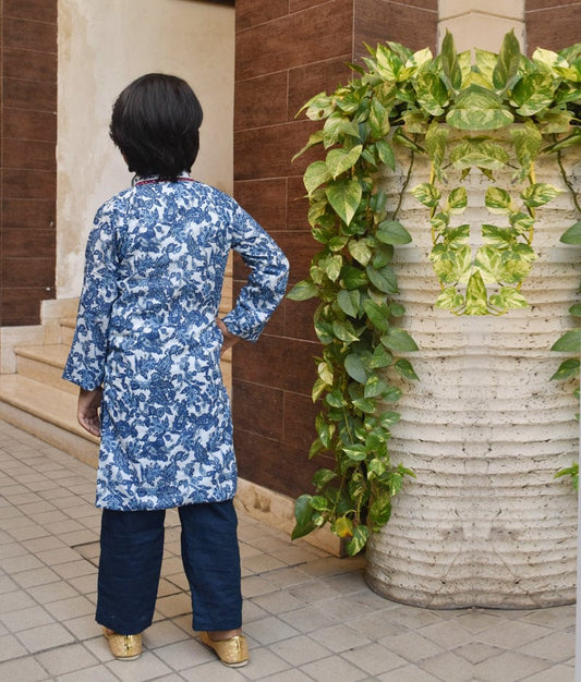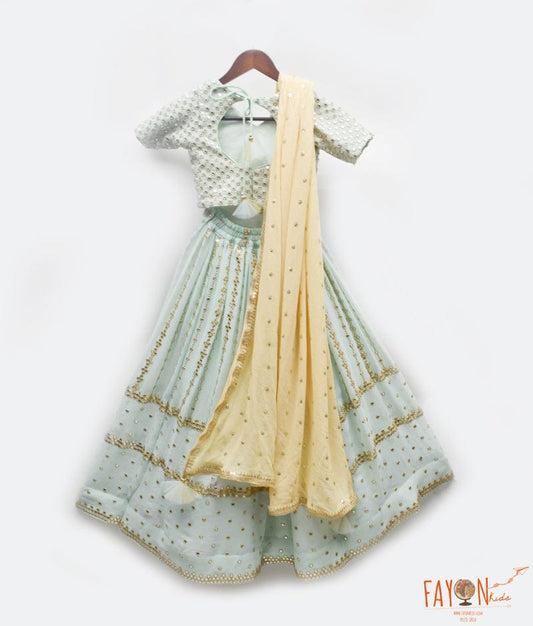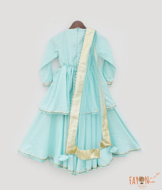 Blue Printed Lehenga Choli and Dupatta for Girls
