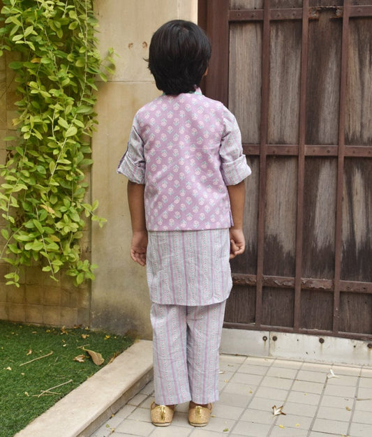 Lilac Printed Nehru Jacket with Kurta and Pant