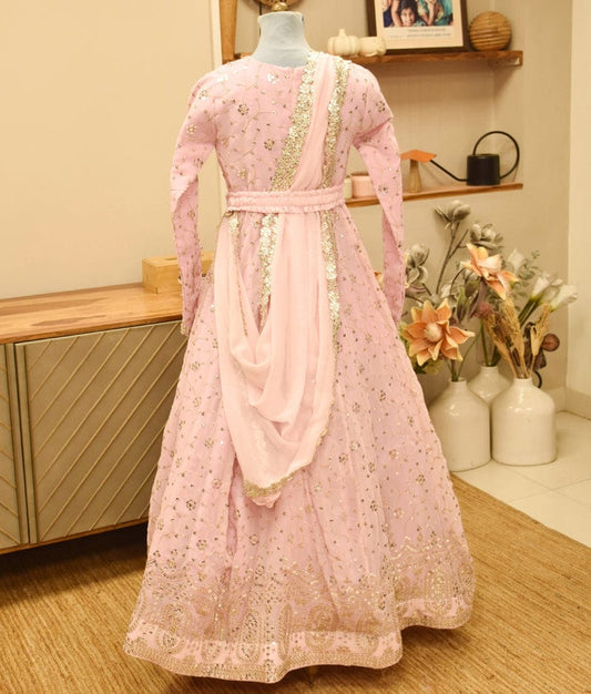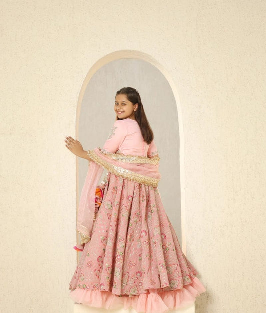 Pink Shimmer Net Lehenga set for Girls