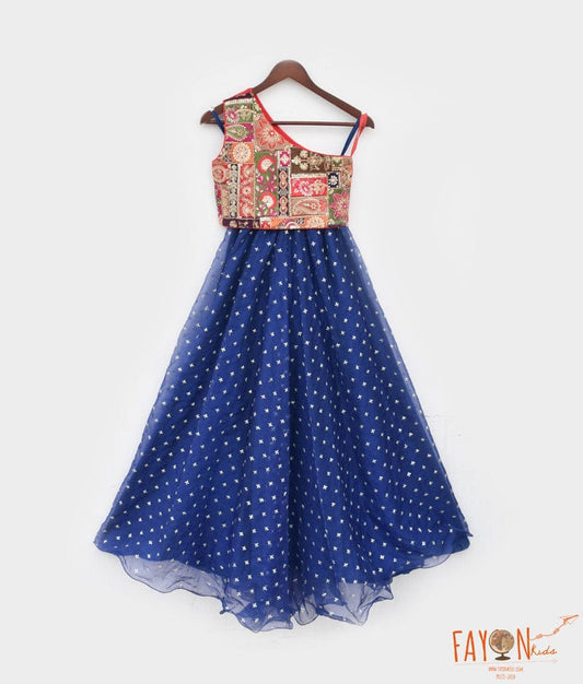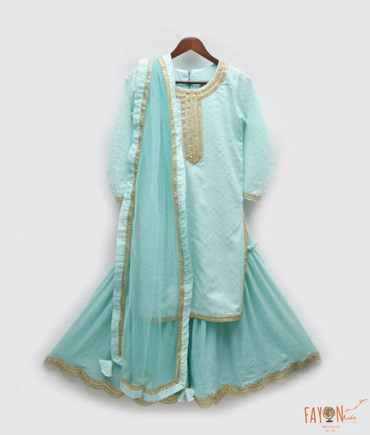 Blue Bloom: Printed Kurti Sharara Set for Girls