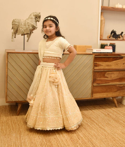 Mirror Embroidery Lehenga for Girls with Beige ...