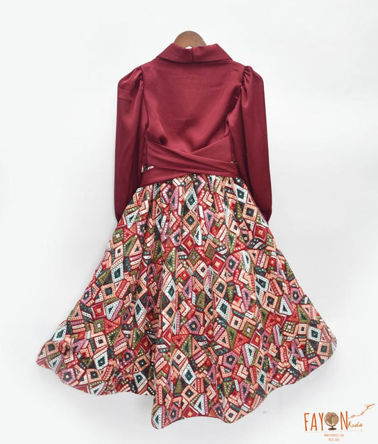 Mirror Embroidery Lehenga for Girls with Maroon...