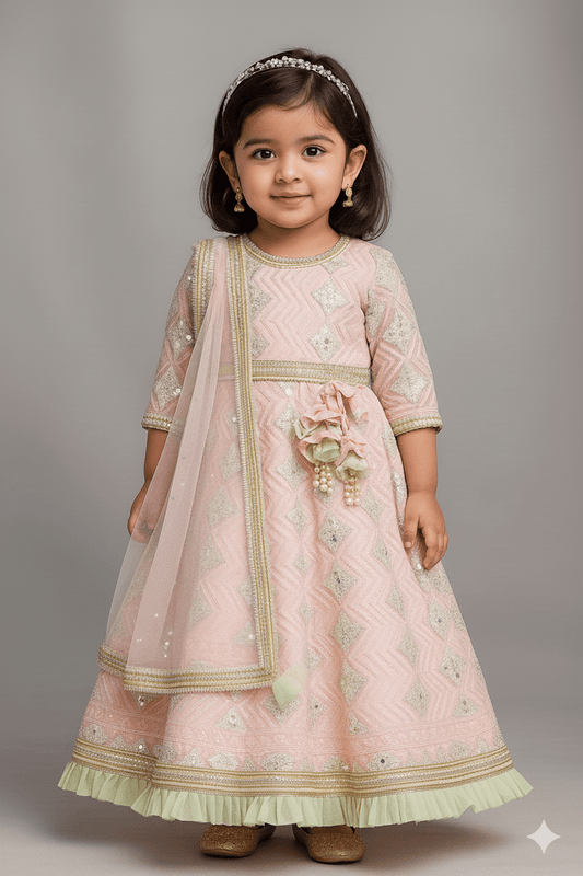 From stylish Indian wedding dresses for girls to elegant gowns, frocks, and lehengas, our collection blends traditional craftsmanship with modern design. Crafted with breathable fabrics, adorned with handcrafted embroidery, and made for comfort, our outfits ensure your little one enjoys every moment—from dancing at the sangeet to twirling at the reception.