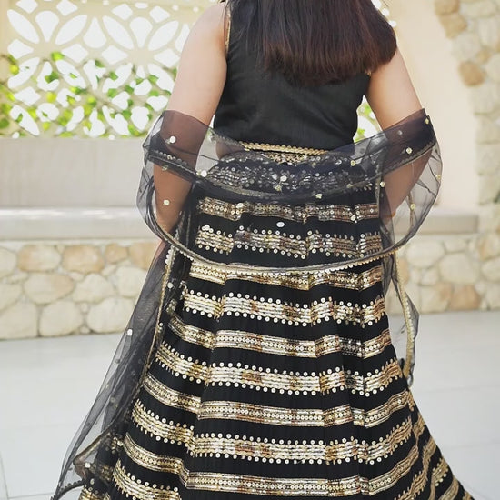 Black Sequins Lehenga Choli Dupatta for Girls