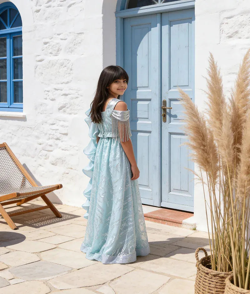 - TOP : Blue Sequence Embroidery Crop Top with Ruffel Dupatta