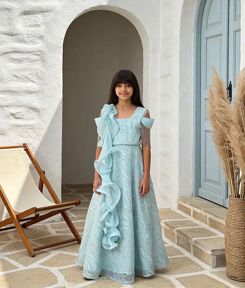 Adorn your style with our Blue Sequence Embroidery Crop Top with Lehenga set. The Cut Dana Embroidered Choli, with soft lining and tassels on the shoulder, complements the exquisite Cut Dana Embroidered Lehenga. The soft lining in the Lehenga ensures comfort, while the ensemble is elegantly finished with a Georgette Drape Dupatta. Perfect for special occasions, this set radiates charm and sophistication, making you the center of attention at any celebration.