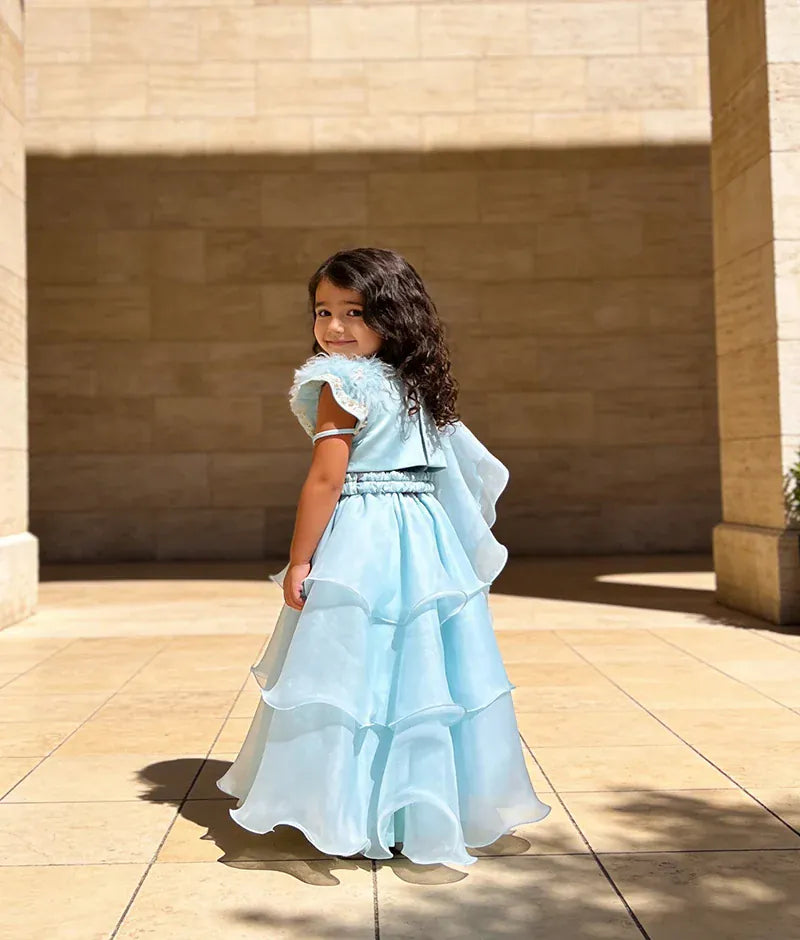 Blue Thread Embroidery Choli and Blue Organza Lehenga Dupatta for Girls