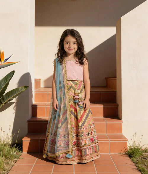 Peach Choli and Embroidery Lehenga Dupatta for Girls