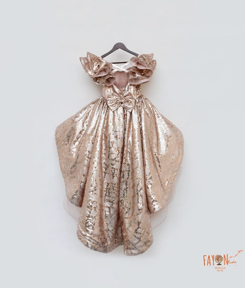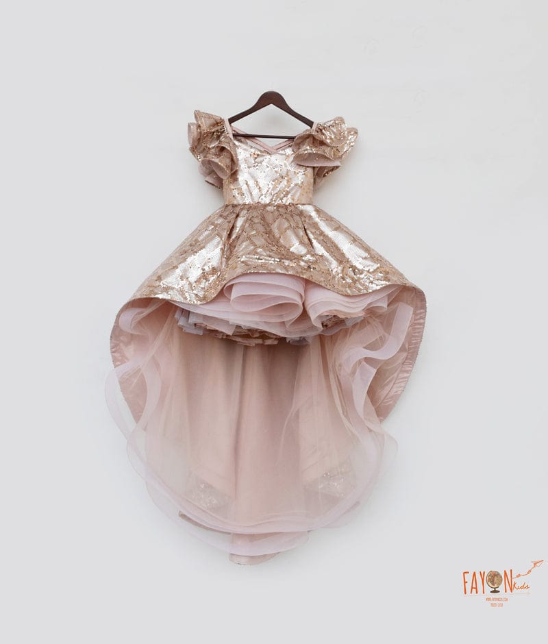 Peach Sequins High Low Dress for Girls