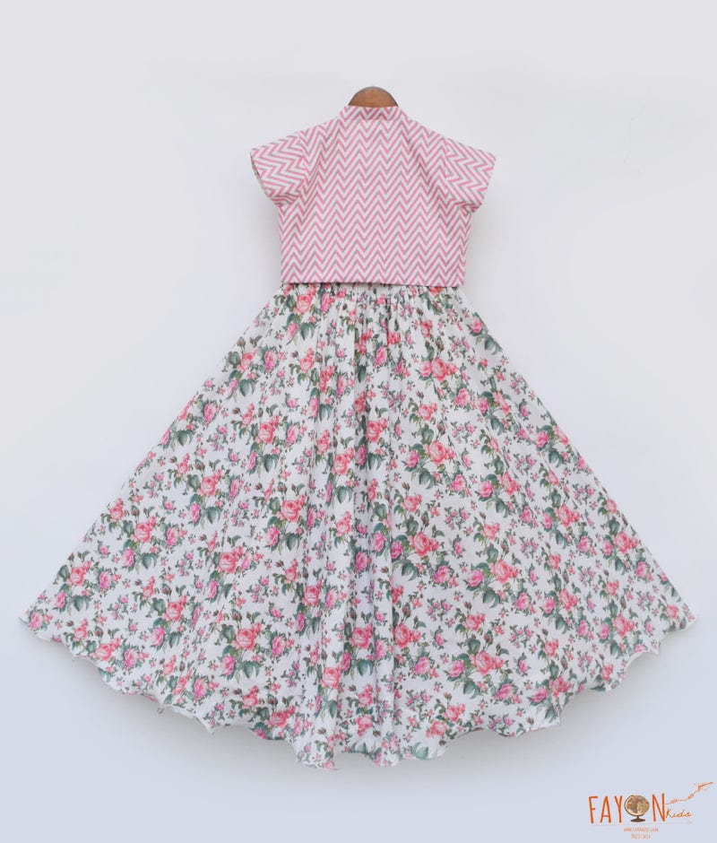 The intricate cotton printed lehenga with silk top in an elegant shade of pink is refreshing for the season. It features a cap sleeves, stone broach attached on top and comes with a cancan.