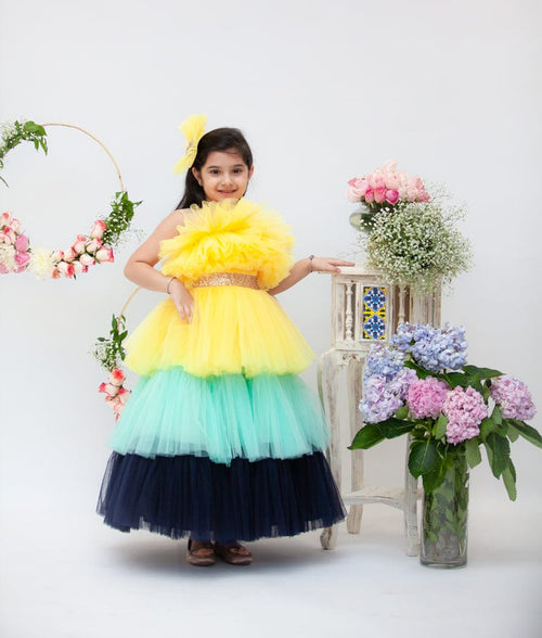 The pastel-hued baby gown is a favourite amongst our little princesses. We design the garments with love and care, for our adorable little dolls. This frock is perfect for casual gatherings as well as formal dine-ins.
