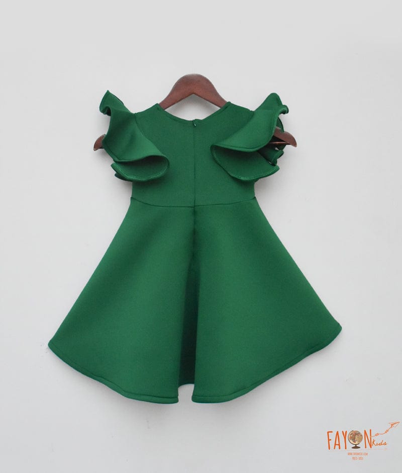 Green Lycra dress with Sequence Bow in Yoke line is an amazing outfit for your little beauty. The fabric is soft and it won't irritate your baby's soft skin. Adorn your baby in this outfit and watch her look like a show stopper.