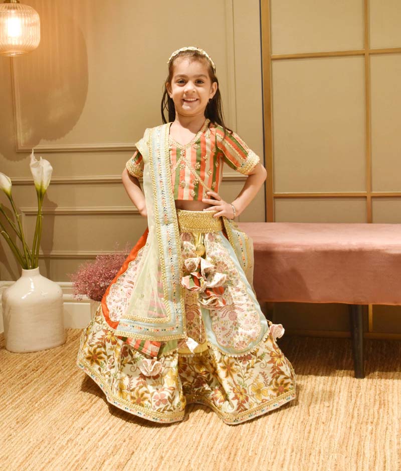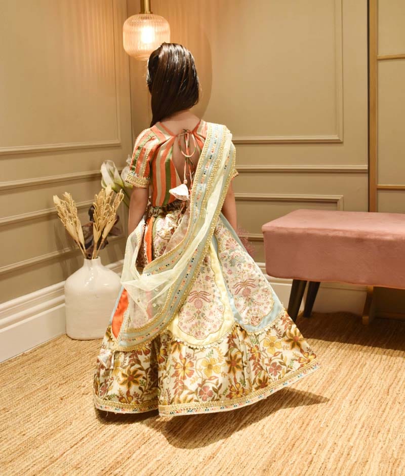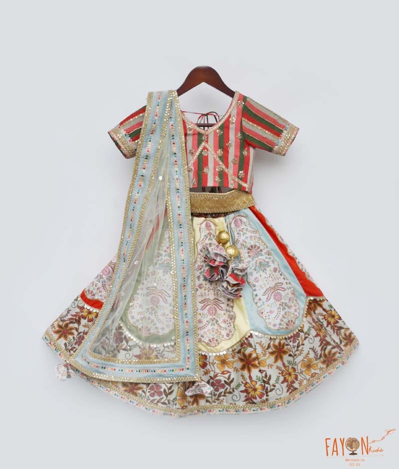 Multi Colour Choli with Printed Lehenga
