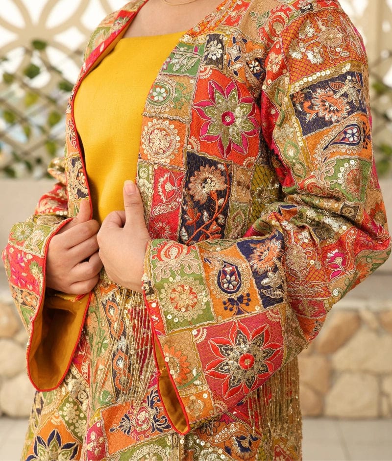 - TOP : Multi Coloured Embroidered Jacket with Crop Top