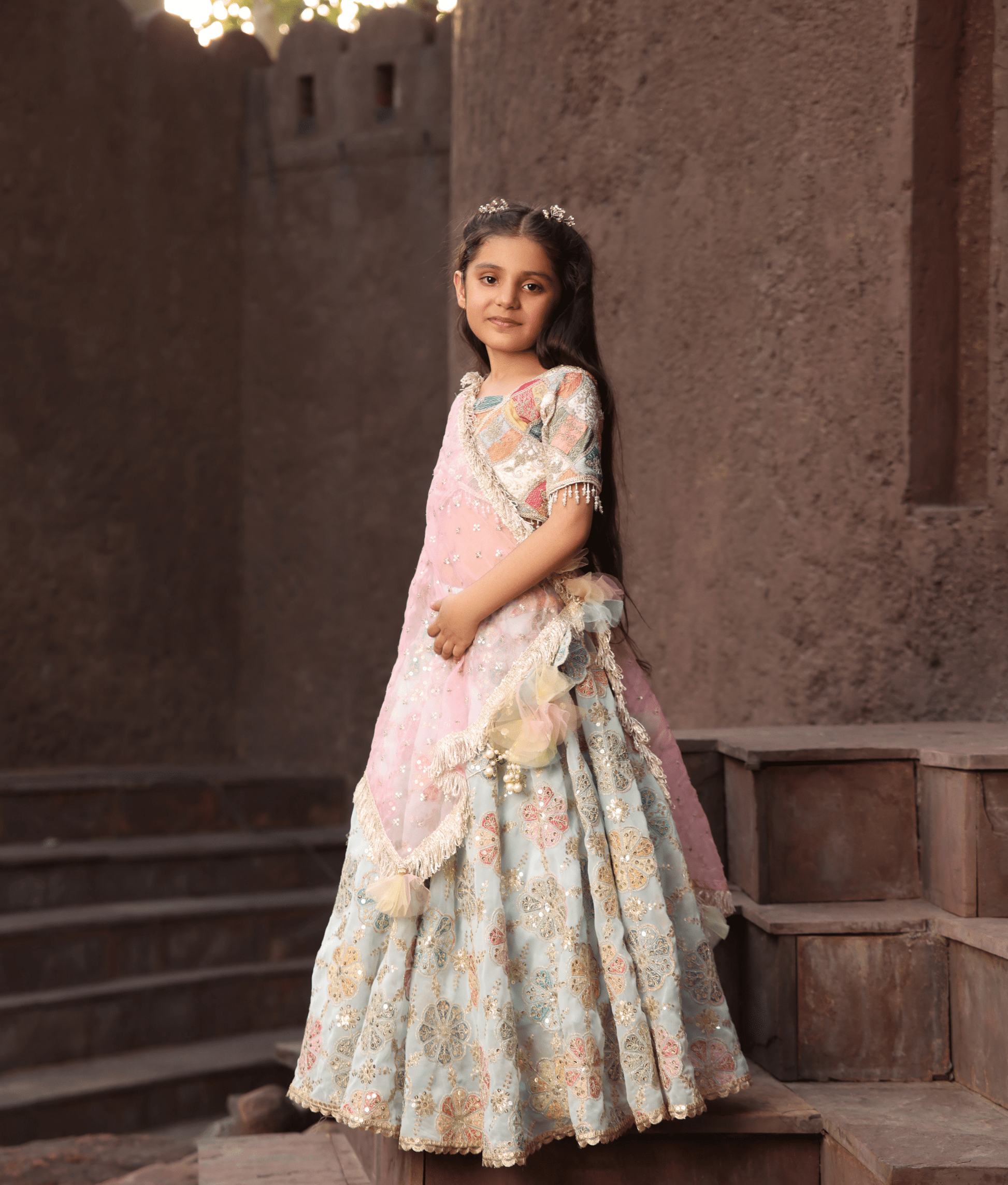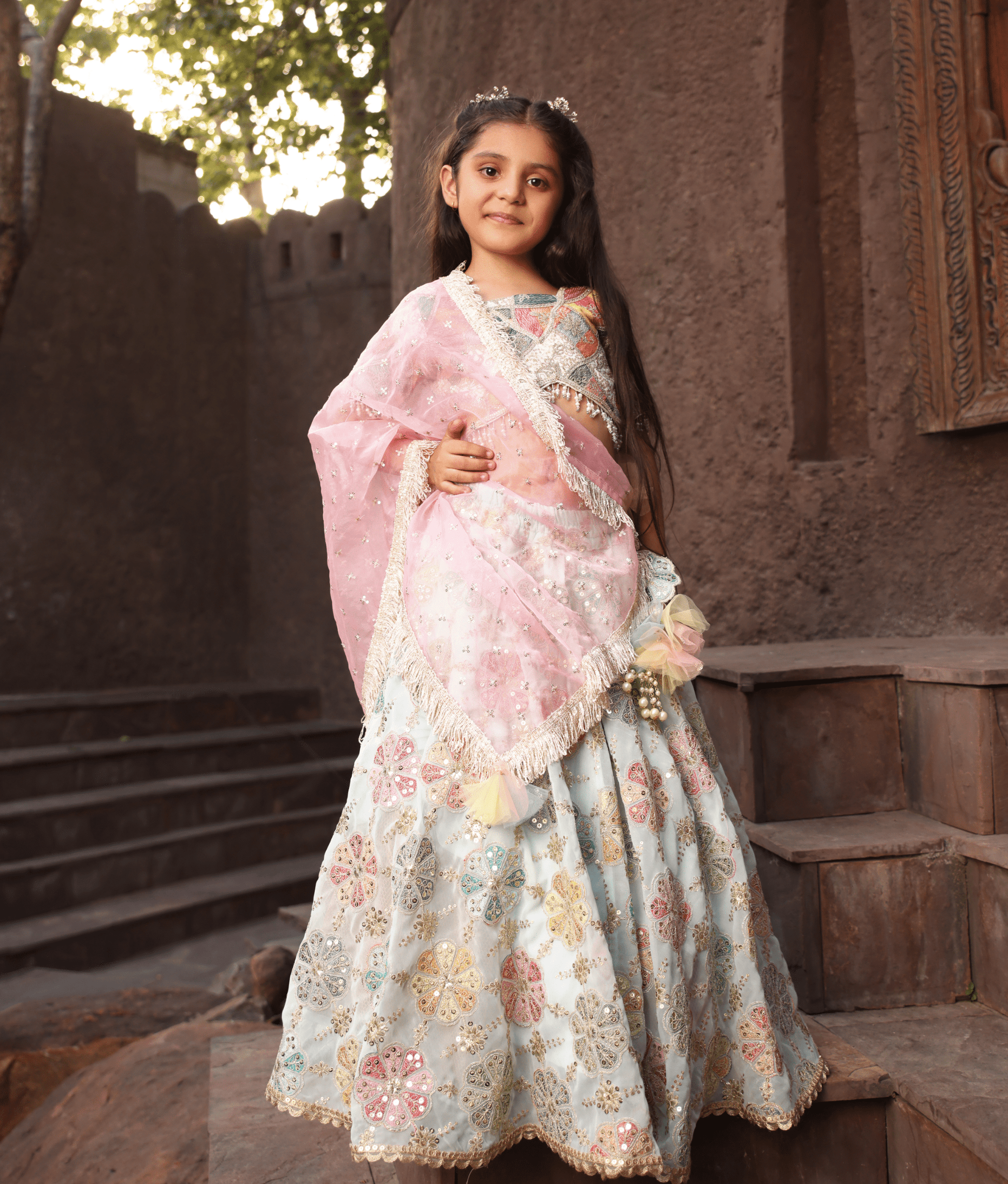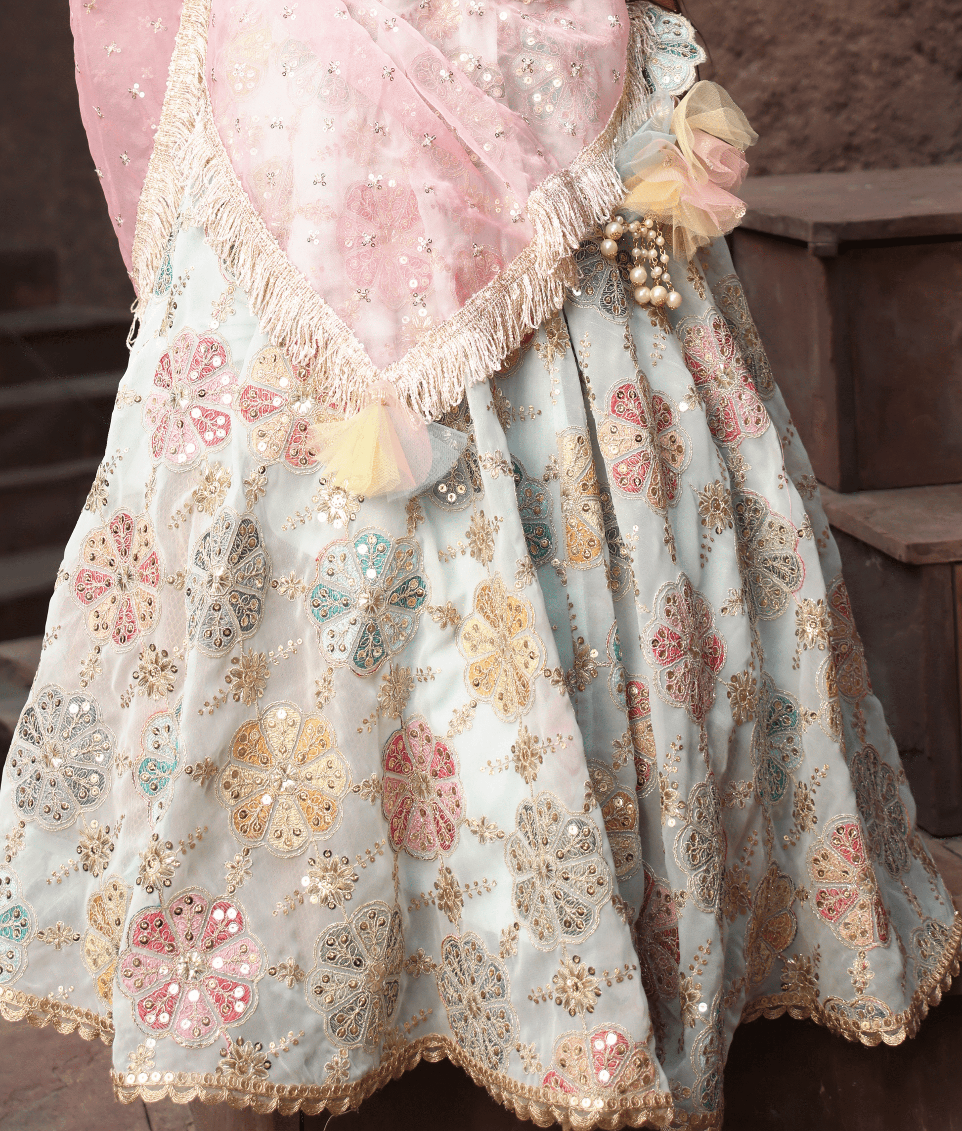Sizzle and shine in our Off-White Embroidered Lehenga set, featuring exquisite sequence and zari hand embroidery with bead details. The soft lining in the choli ensures comfort, while the elbow sleeves add a stylish touch. The zari embroidery flower design on the lehenga and the heavy tassel accents create a striking look. Complete with a sequence embroidery dupatta, this ensemble packs a punch at every wedding occasion!
