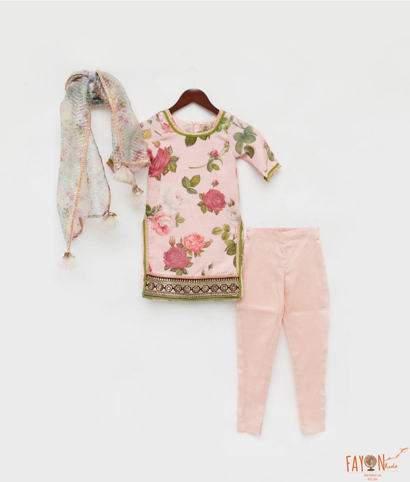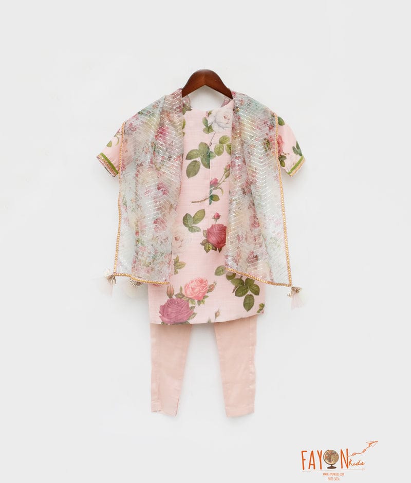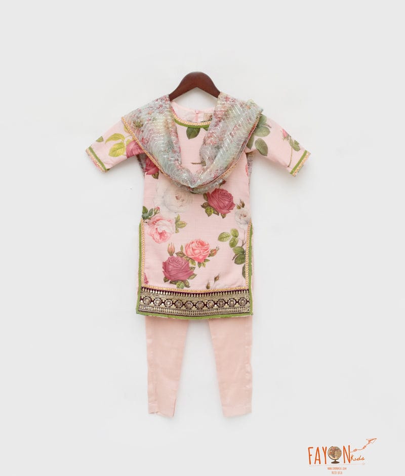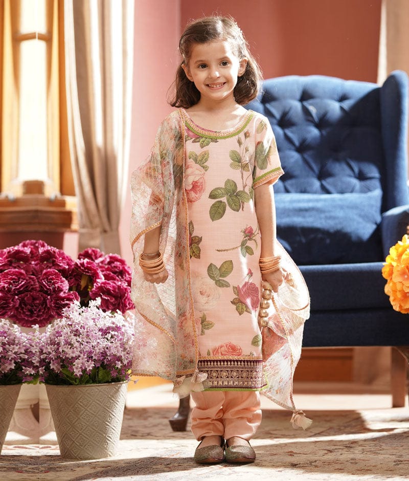 Are you still looking for something comfortable, stylish and your children can wear it for longer hours? Here is what you need, the peach floral cotton silk kurti and churidar set has Peach floral kurti with churidar and dupatta. Smart and chic pick for your little one and get these beautiful styles.