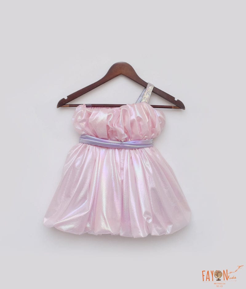 Get ready to shine in our Pink Metallic Frock, a stunning piece that combines style and elegance. Crafted from a beautiful pink metallic fabric. The frock features a Swarovski detailing on the shoulder. Additionally, a purple metallic belt is included to add a pop of contrasting color. The frock is completed with a delicate net frill, adding a playful and feminine touch. Whether you're attending a party or a special event, this Pink Metallic Frock is sure to make you stand out in the most enchanting way.