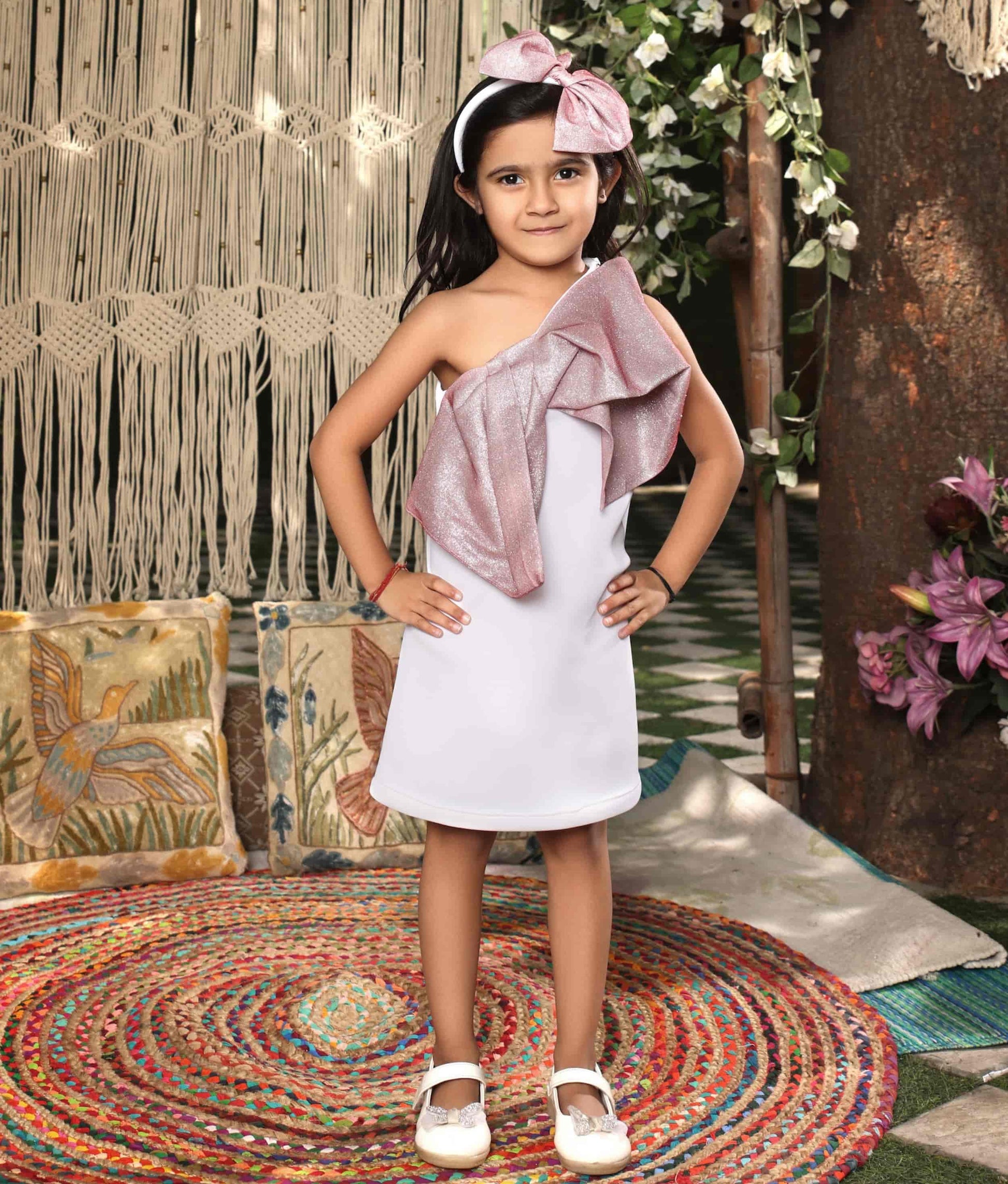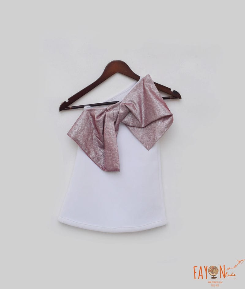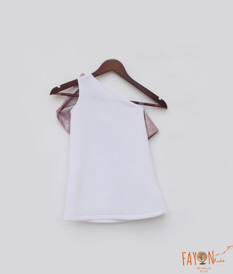 Step into the spotlight with our White Lycra Dress with pink Shimmer Bow. This mesmerizing dress is made from premium white lycra fabric, offering a comfortable and flattering fit. With its one-shoulder style, it exudes a contemporary and chic vibe. The dress is beautifully adorned with a dazzling pink shimmer bow, delicately attached at the waistline, creating an eye-catching focal point.